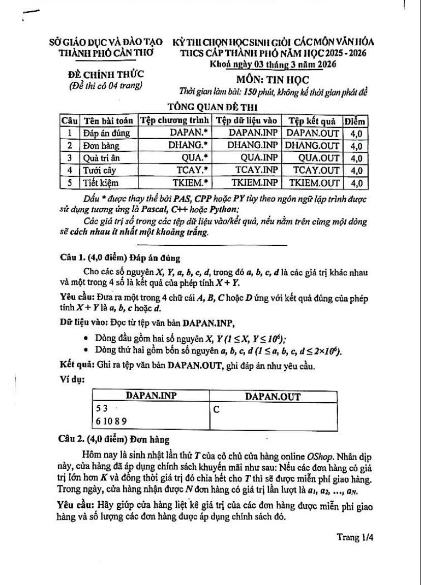 | 5 | HSG9 Cần thơ 2025-2026 Tiết kiệm | 40 (p) | 1.0s | 1G |