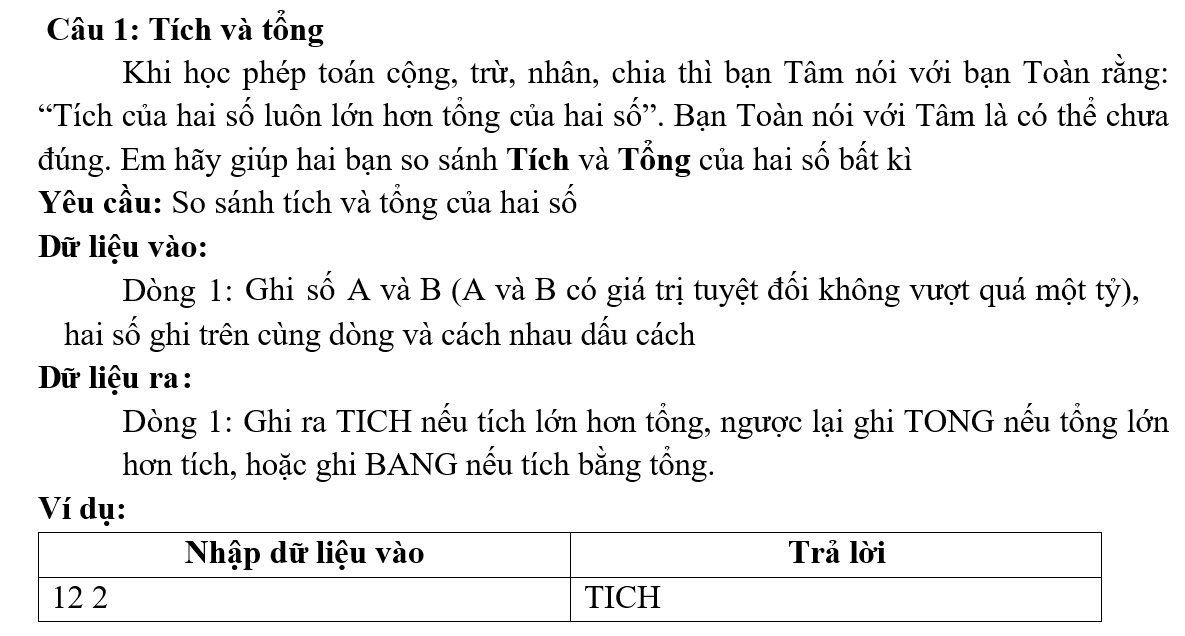Kỳ thi thử chọn đội tuyển Tin học trẻ lần thứ 1
