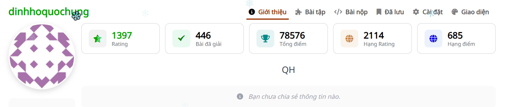 | Tên đăng nhập | Điểm ▾ | Bài tập | Giới thiệu | ||