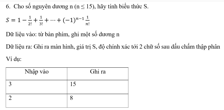 Điểm: 3 (p) Thời gian: 1.0s Bộ nhớ: 1G Input: bàn phím Output: màn hình