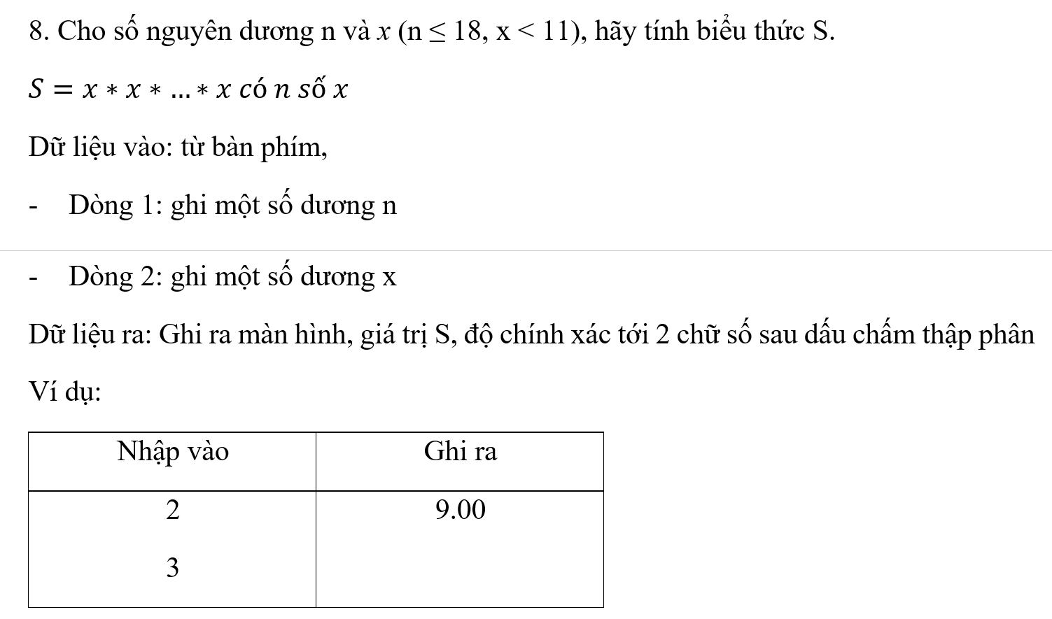 Điểm: 3 (p) Thời gian: 1.0s Bộ nhớ: 1G Input: bàn phím Output: màn hình