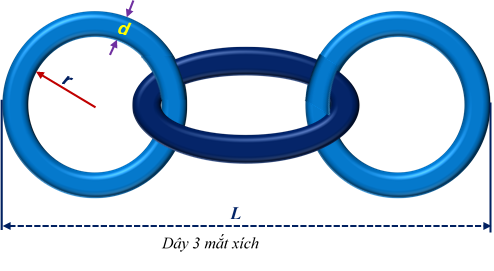 Người ta dùng dây thép tròn với độ dày (đường kính thiết diện ngang) d làm n vòng tròn bán kính vòng tròn trong là r, móc nối với nhau thành một dây xích, mỗi vòng tròn là một mắt xích. Hình 1 nêu trường hợp dây có 3 mắt xích. Nếu dây xích có nhiều hơn một mắt xích thì tồn tại hai vòng tròn, mỗi vòng chỉ nối với đúng một vòng tròn khác, đó là các mắt xích đầu và cuối. Cầm 2 mắt xích đầu và cuối, kéo căng ra, ta có dây xích độ dài L.